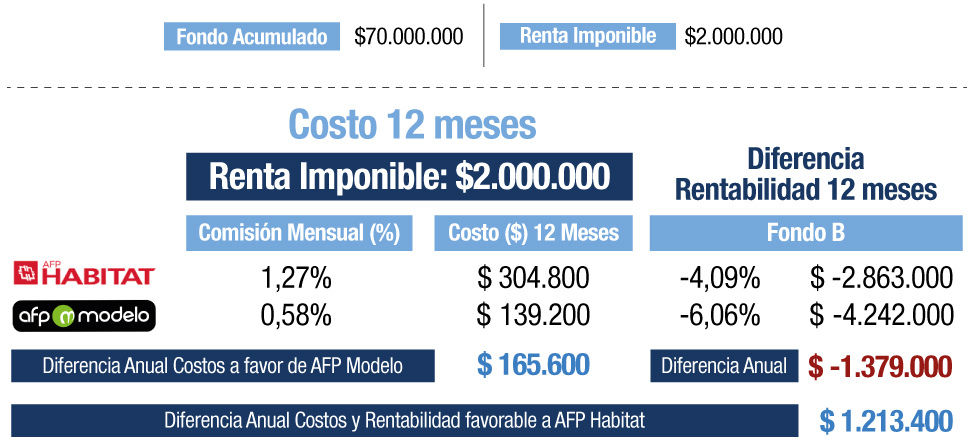 Para esto, se comparan los resultados obtenidos del fondo B entre su AFP y AFP Habitat, que ha sido durante los últimos 12 meses la administradora más rentable.