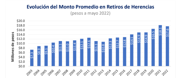 - Monto promedio pagado a herederos llega a $17,6 millones en 2022.