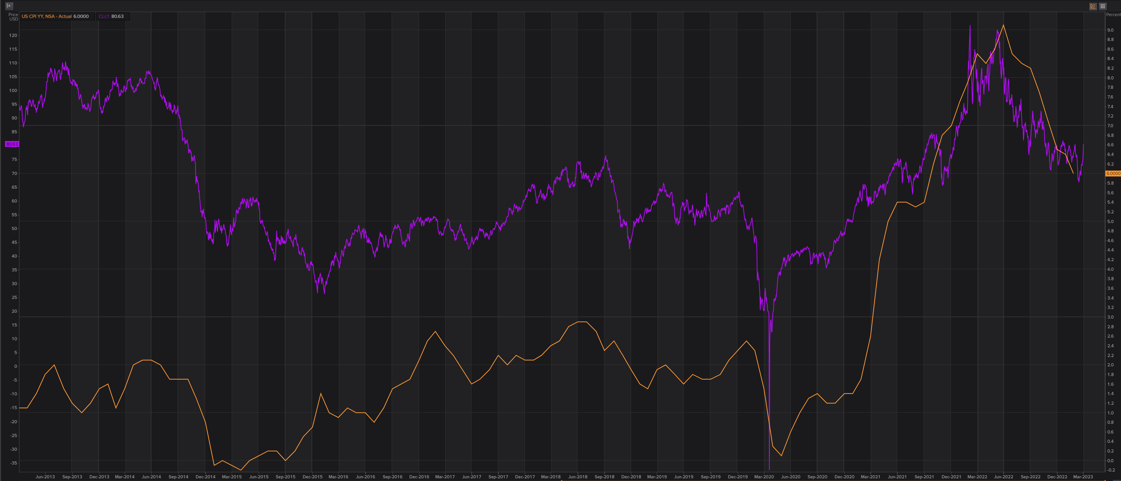 Al examinarlo detenidamente, podemos inferir que las fluctuaciones en el precio del petróleo suelen anticipar cambios en la inflación. Este recorte de 1 millón de barriles diarios, liderado por Arabia Saudita con 500.000 barriles diarios, podría poner en peligro la convergencia de la tasa de inflación anualizada estadounidense al rango esperado del 3.50% para finales de 2023.